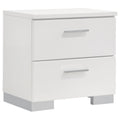 | • Stellar contemporary design shows off clean lines and a cool, airy design aesthetic • Designer white polyurethane finish polished to a superior high-gloss effect • Bed features plank headboard and low profile footboard • Polished chrome metal bar pull handles add minimalist appeal • Spacious storage drawers with felt-lining in top drawers • Metal extension glides create stability and smooth operation |