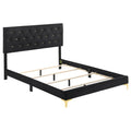 Complete your primary suite with this modern glam bedroom set, designed with a foam padded bed upholstered in soft, black velvet for extra comfort. A smooth, black finish covers the surface of each drawer, creating a chic, bold look. Gold finished hardware including bracket style legs, drawer pulls, and bar shaped buttons along the diamond tufted headboard offer a warm, metallic glimmer and interest. The two-drawer nightstand, six-drawer dresser, and five-drawer chest offer all the garment storage you need. Mount the black framed mirror on the dresser to make the most of the space and create a vanity setup. | |
